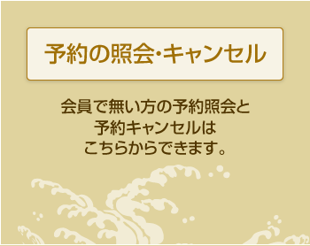 会員の方はこちらで予約の確認やキャンセル、登録情報の確認と変更ができます。さらに無料会員にご登録頂きますと、インターネットでのご予約時にご宿泊料金の1%がポイントとして貯まります。